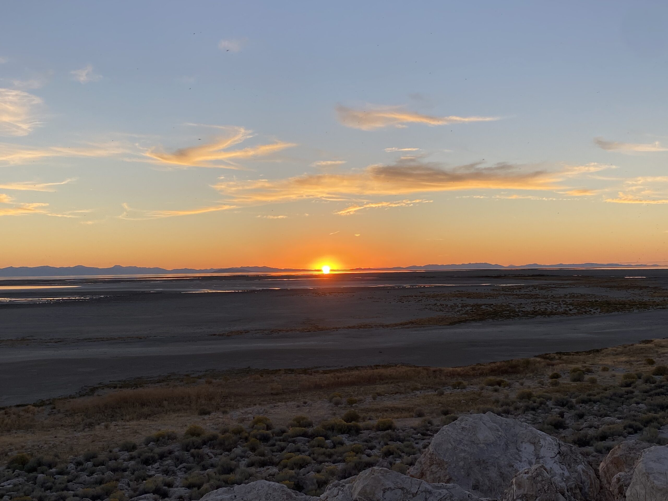 Perhaps the lack of other campers and visitors should have tipped us off, but we arrived at the Park naively excited for our tour and our last night of camping before flying home the next day. After a quick stop at the visitors center, we drove out to our campsite. Between the two minute walk into the visitors center and the approximately 45 seconds that I spent outside of the van checking out our site, I realized we had a huge problem: mosquitoes. We’ve backpack camped in deep woods, next to waterfalls, near marshland – all places that host mosquitoes, sometimes in droves. The mosquitoes at Antelope Island were like nothing I have ever seen. Layers and layers of bug spray did nothing to dissuade them. Every time I smacked at my legs, arms, head, my hands came away covered in dead bugs and blood, but hundreds more mosquitoes quickly arrived to take the place of any that I managed to vanquish.