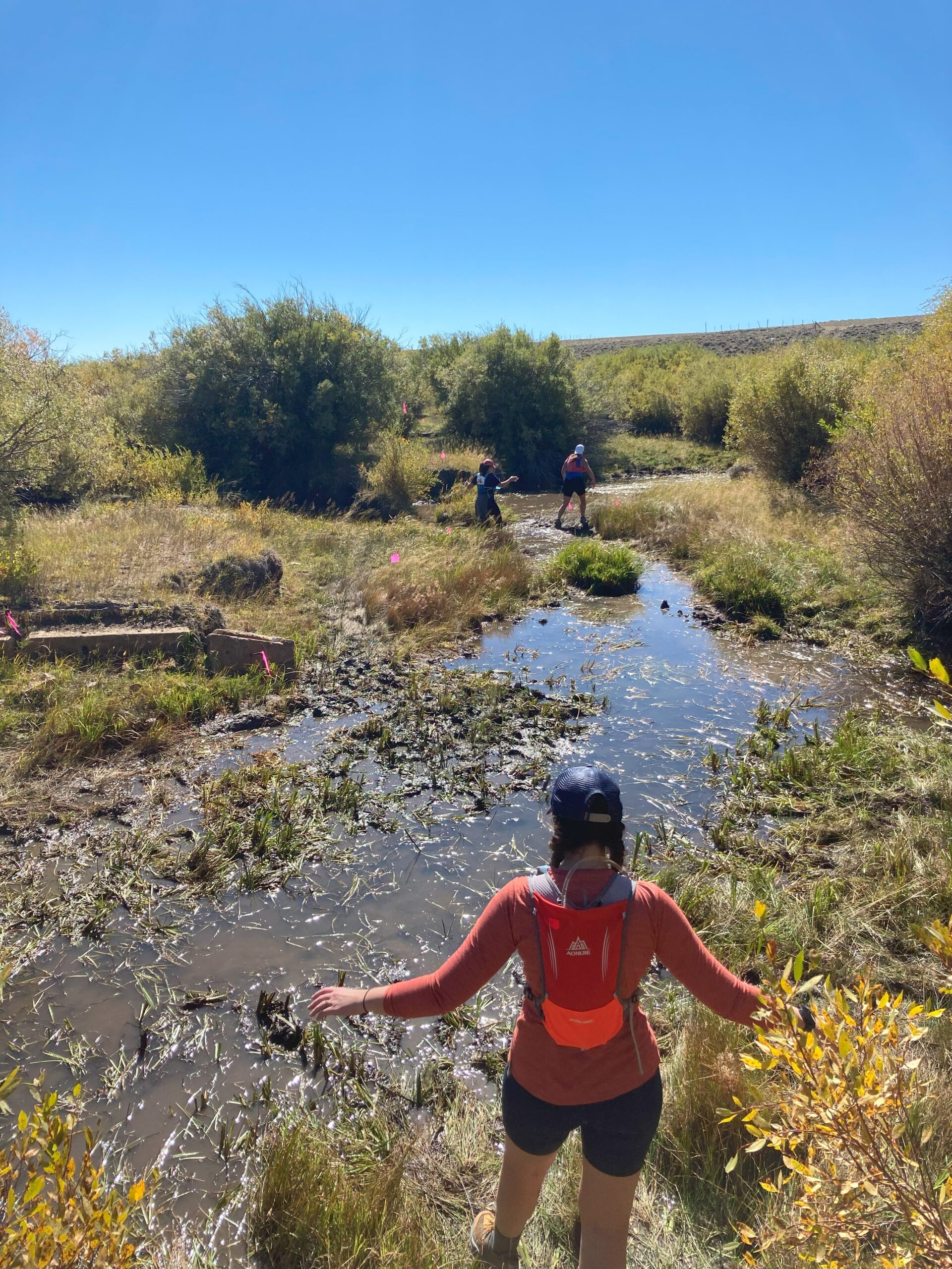 As fun as the water crossings were and while they had a nice cooling effect on my feet, it really was farm run-off, and it was dirty, dirty brown. My bright yellow shoes were a grotesque shade by the end of the day, and if I hadn’t needed them for our race in Idaho less than a week later, I wouldn’t have bothered putting them back in the van at the end of the day.