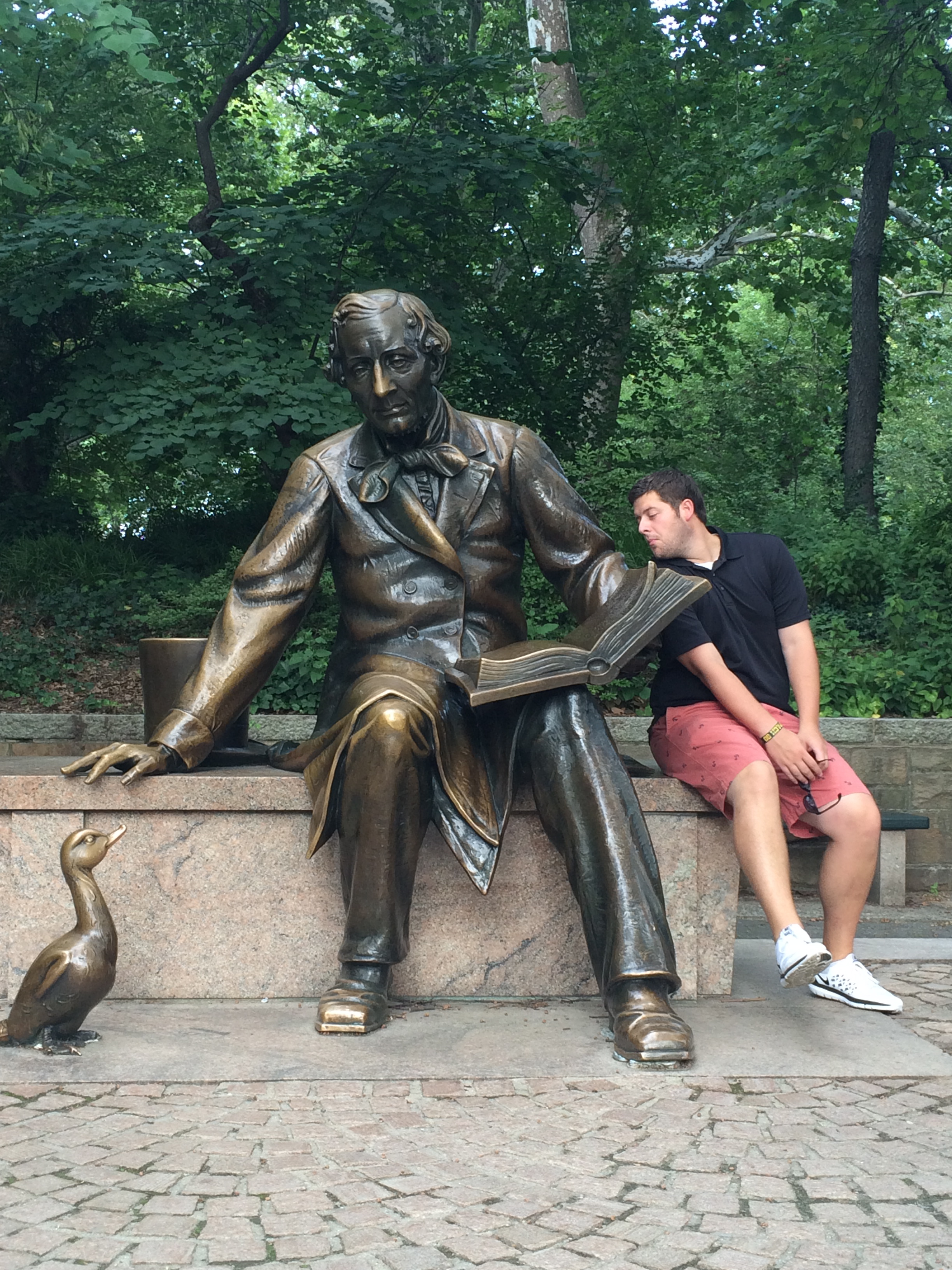 You have a few hours before you need to head to Times Square, so stroll through some of the park. My list of can’t-miss attractions includes: the Shakespeare Garden, Bethesda Fountain, Strawberry Fields, Belvedere Castle, and the Mall (the only straight path in the entire park). My personal favorite spot is the Alice in Wonderland statue, while B really liked Hans Christian Andersen.