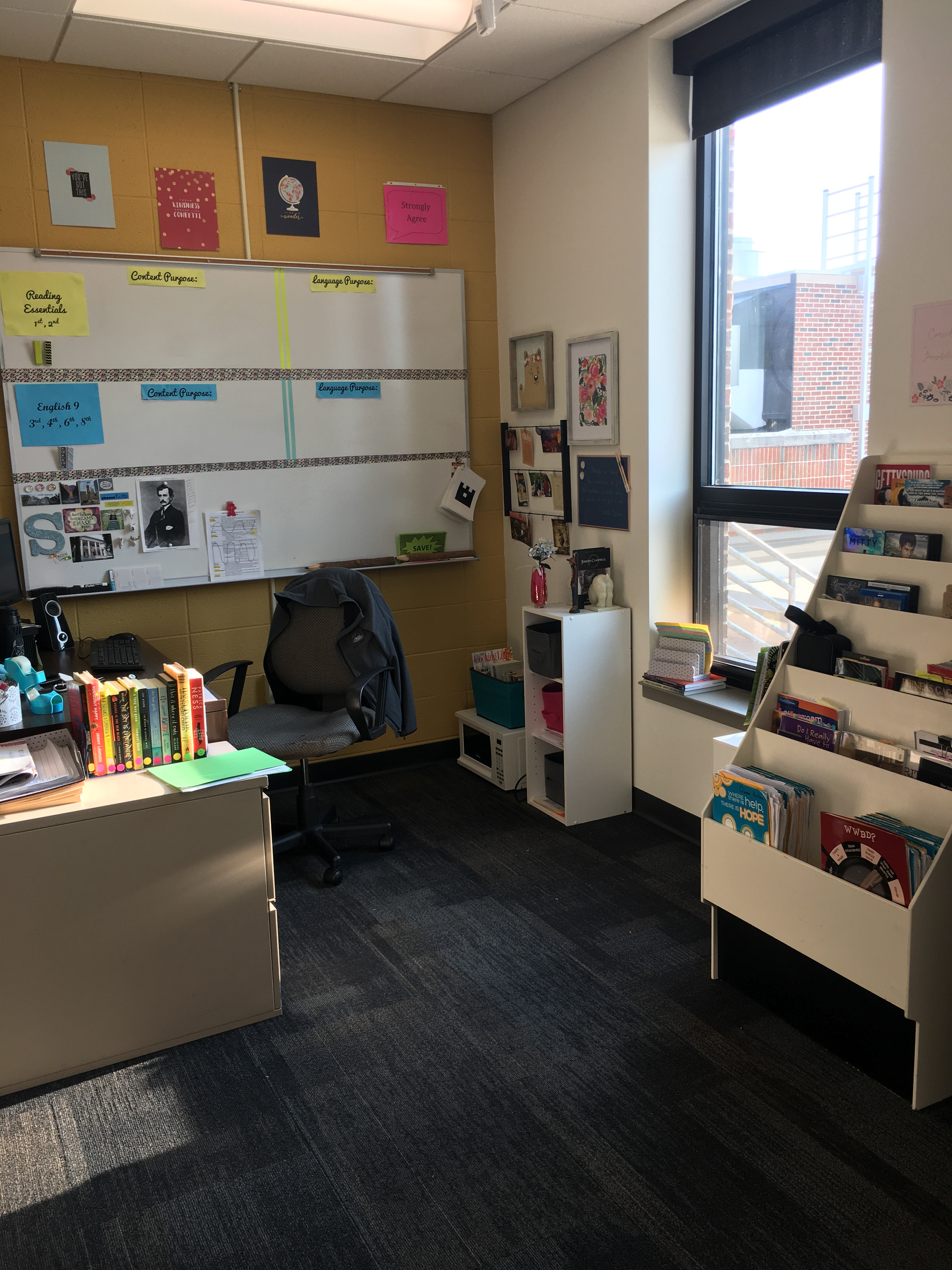 My first selfish act this year was to decorate my classroom with myself in mind. I absolutely want students to feel welcomed when they come in my room. However, over the next ten-ish months I will spend almost as much time in my classroom as I spend at home, and that includes time spent asleep. I need my classroom to feel inviting to me as much as it does to my students. I need it to be a place of peace, a creative sanctuary, my cave to escape to. I need it to reflect my personality and show my students part of what I value.