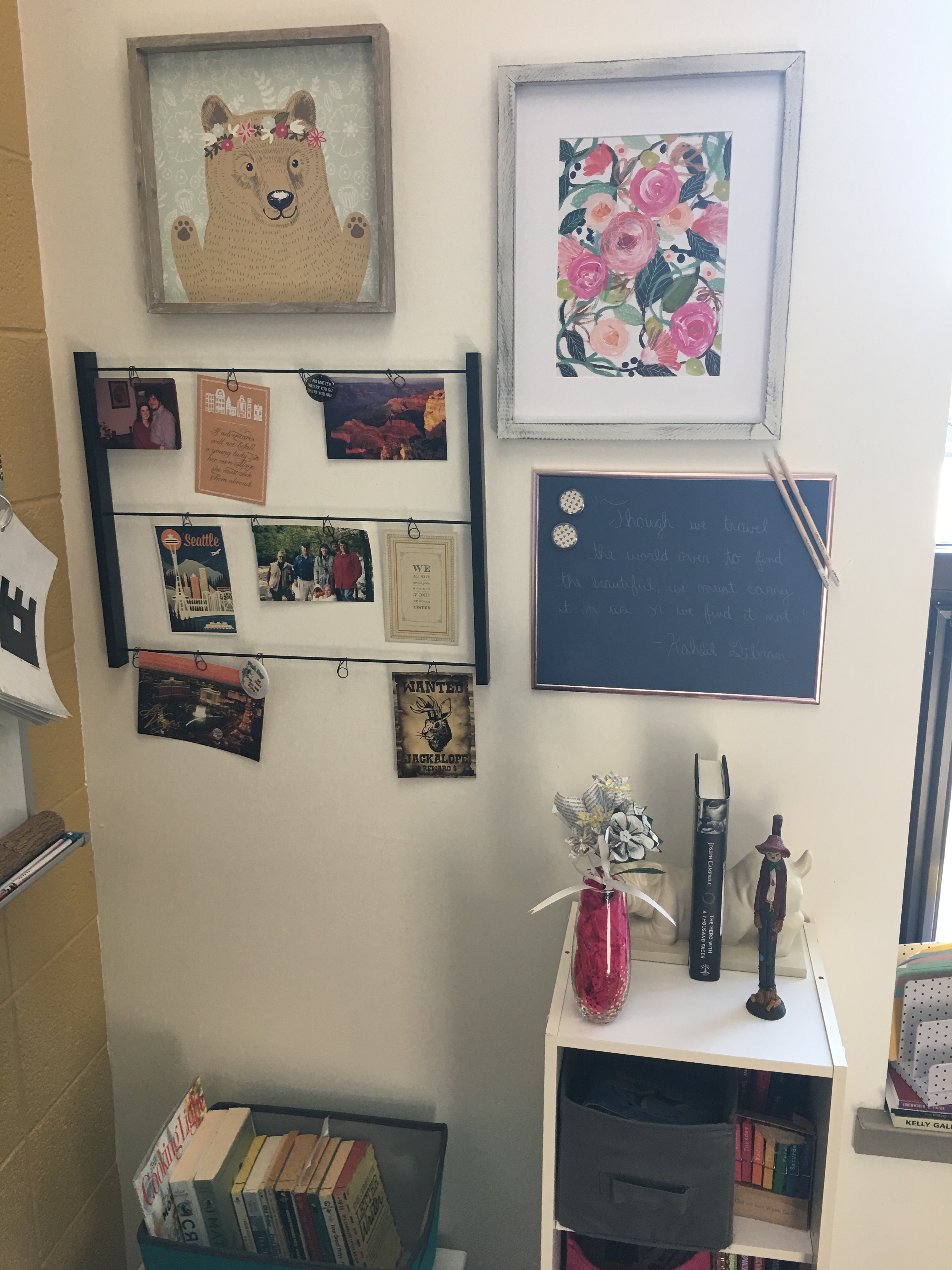 I put cute quotes on my walls instead of visuals. (Don’t worry, I left room for anchor charts.) I bought a picture of a bear for no other reason than I like bears (spirit animal, y’all) and it’s pretty. I got a hot pink exercise ball chair that I am insanely excited about but will probably fall off of in front of my students in the first two days of school. This evening I went for a run instead of looking at my slides for the 32nd time. I’m trying not to feel guilty about any of this and I’m trying not to explain my motives, so enjoy the pictures of my revamped room below. 🙂